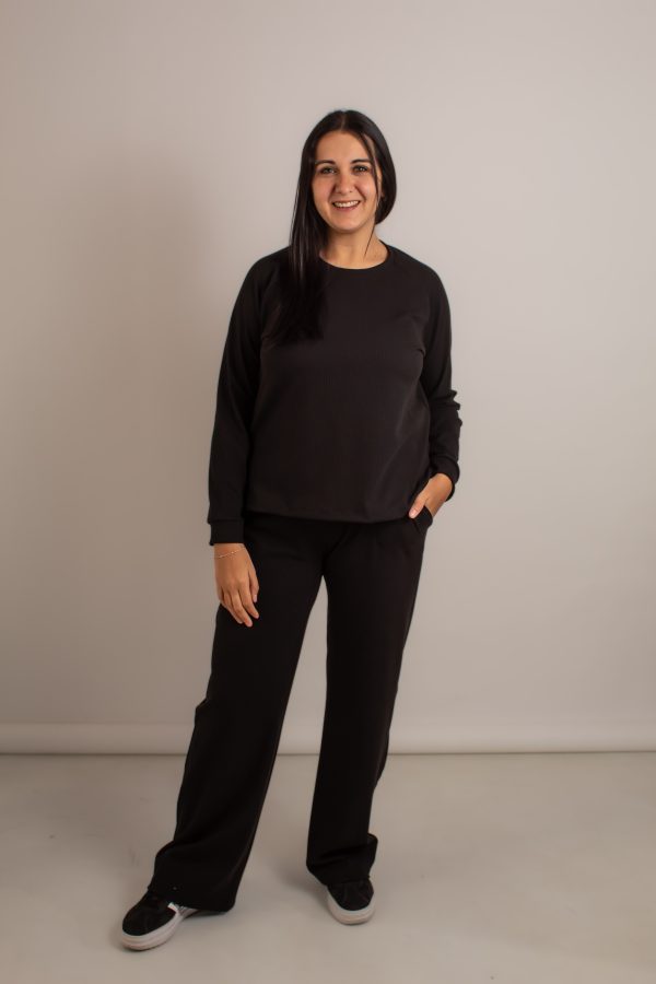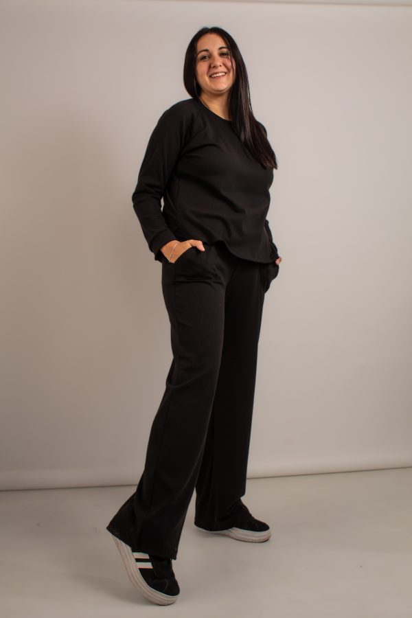 Buzo con pantalon palazzo. Cintura de elastico.