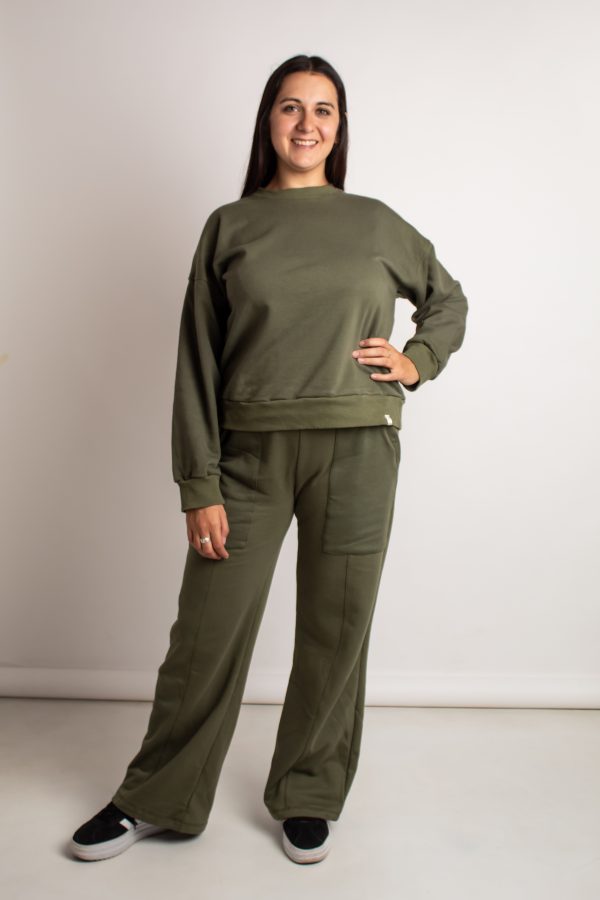 Fabricado en algodón peinado rústico, con bolsillos náuticos y cintura de elásticos.