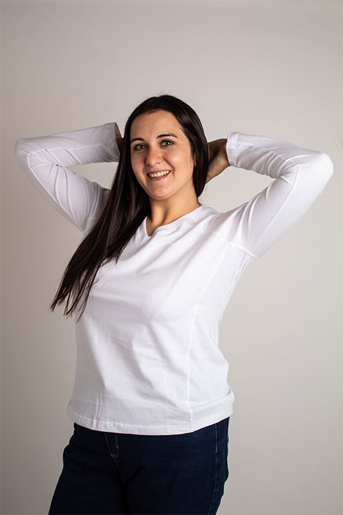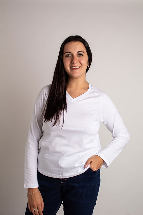 La remera estrella de Luz Violeta, un clásico que no puede faltar en tu guardarropa. Remera clásica con cuello en V, confeccionada con algodón peinado.