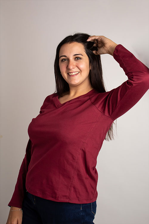 La remera estrella de Luz Violeta, un clásico que no puede faltar en tu guardarropa. Remera clásica con cuello en V, confeccionada con algodón peinado.