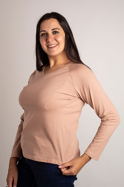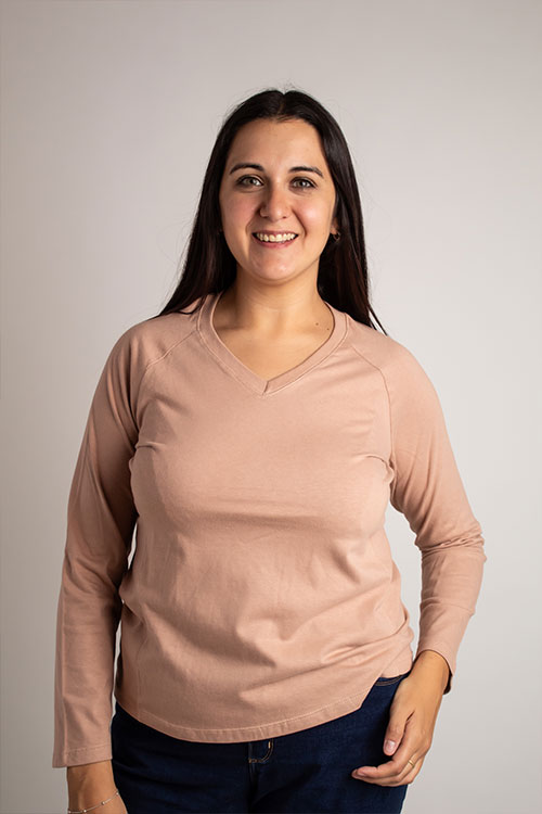 La remera estrella de Luz Violeta, un clásico que no puede faltar en tu guardarropa. Remera clásica con cuello en V, confeccionada con algodón peinado.