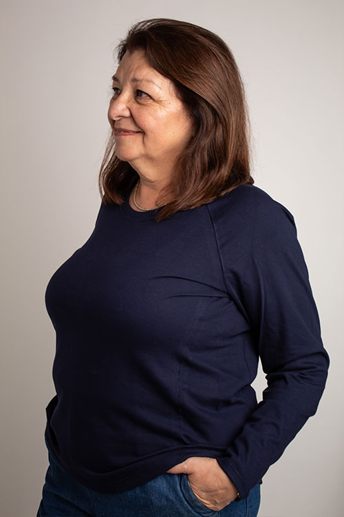 La remera estrella de Luz Violeta, un clásico que no puede faltar en tu guardarropa. Remera clásica con cuello en V, confeccionada con algodón peinado.